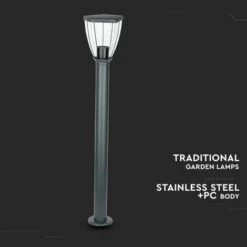 V-TAC Lampe De Jardin LED 110cm Avec Douille E27 (max 60W) En Acier Inoxydable Noir IP44