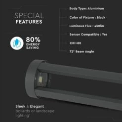 V-TAC Lampe De Jardin LED Fixation Au Sol LED COB 10W Couleur Noire H: 80cm 6400K IP65