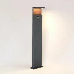 LUCANDE LED Eclairage Exterieur Avec Detecteur De Mouvement ‘Lignus’ En Aluminium – Gris Foncé, Bois