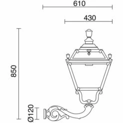 Lanterne à bras noir. Lampe à incandescence en résine, diffuseur en polycarbonate transparent, finition noire et douille E27, pour une utilisation en extérieur. Application : résidentiel classique. 110V-240V CA. Aucun équipement requis. Classe électrique II. Puissance (W) 75.