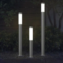 Ces bornes cylindriques au design simple pouront être disséminées dans votre jardin pour un éclairage complet mais toujours discret. Elles doivent être branchées au réseau électrique et nécessite des ampoules E27.En acier inoxydable, elles ne craignent pas les intempéries et sont faciles d’entretien.