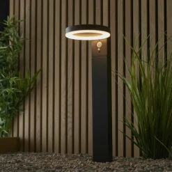 Endon Ebro Lampe de borne ronde LED dimmable à énergie solaire moderne texturé noir, capteurs de mouvement et de nuit PIR, blanc chaud, IP44 | Finition : Pc noir et blanc texturé | Matériel : Alliage d’aluminium & polycarbonate Hauteur (cm) : 50,00 | Largeur (cm) : 16,00 | Profondeur (cm): 20,20 | Type de lampe : LED INTÉGRÉE | Nombre de lumières : 1 | Indice IP : IP44 | Kelvin : 3000 | Lumens : 600 | Gradable : Gradable pas à pas | Interrupteur : interrupteur-poussoir | Ampoule incluse : Oui | Puissance (max): 5.88W | Poids (kg) : 1,13