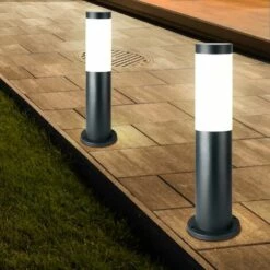 la description L’élégant luminaire d’extérieur sur pied de la série Boston se caractérise par son design élégant et sa finition soignée. Grâce à son indice de protection IP44, le lampadaire est parfaitement adapté à une utilisation en extérieur. Ce modèle est fait d’acier inoxydable et de plastique opale et a une taille totale de 45 cm. Avec les piquets fournis, vous pouvez facilement fixer les lumières dans le sol, par exemple sur la pelouse. La lampe est équipée d’une douille E27 et vous permet d’utiliser une lampe (max. 60W) de votre choix. Vous pouvez compléter le tableau avec d’autres lampes de base et appliques murales de la même série de produits. La source lumineuse n’est pas comprise dans la livraison. La livraison comprend deux lampes sur pied avec piquets de terre. Détails lampe • Type de lampe : lampe sur pied • Matériau : acier inoxydable, plastique • Couleur : anthracite, opale • Degré de protection : IP44 • Diamètre x hauteur en cm : 7,6 x 45 • Diamètre du pied en cm : 12,7 • Prise : 1x E27 • Ampoules incluses : non • Ampoules de puissance : 1 x 60 watts max. • Alimentation : 220 -240 V, 50 -60 Hz Détails piquet de terre • Matériau : acier