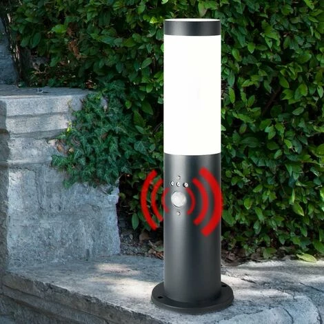 la description L’élégant lampadaire d’extérieur se caractérise par son design élégant, le détecteur de mouvement et la finition soignée. Grâce à son indice de protection IP44, le lampadaire est parfaitement adapté à une utilisation en extérieur. Ce modèle est fait d’acier inoxydable et de plastique opale et a une taille totale de 45 cm. La lampe est équipée d’une douille E27 et vous permet d’utiliser une lampe (max. 60W) de votre choix. Avec le piquet fourni, vous pouvez facilement fixer la lampe dans le sol, par exemple sur la pelouse. Vous pouvez compléter le tableau avec d’autres lampes de base et appliques murales de la même série de produits. La source lumineuse n’est pas comprise dans la livraison. Un lampadaire avec un piquet de terre assorti est inclus dans la livraison. Détails lampe • Type de lampe : lampe sur pied • Matériau : acier inoxydable, plastique • Couleur : anthracite, opale • Degré de protection : IP44 • Détecteur de mouvement