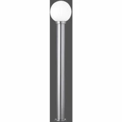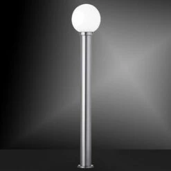 Détails lampe • Type de lampe : lampe sur pied • Matériel: acier inoxydable • Couleur : argent, blanc • Degré de protection : IP44 • Diamètre x hauteur en cm : 20×110 • Prise : 1x E27 • Ampoules incluses : non • Ampoules de puissance : 1x 60 watts max. • Alimentation : 230 V, 50 Hz