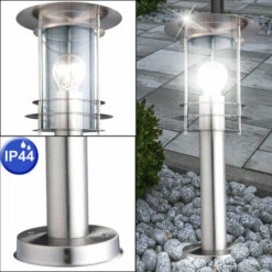 Description Lampe d’extérieur élégante qui met en valeur l’espace autour de votre maison avec style et classe. Gr&;ce à la classe de protection IP44, la lampe est résistante aux éclaboussures et donc prédestinée à une utilisation en extérieur, que ce soit sur la terrasse, le balcon ou dans le jardin. La douille E27 est fixée à un beau corps en acier inoxydable et est entourée d’un abat-jour transparent. Cela donne au luminaire une touche d’élégance. Par rapport aux luminaires normaux, les projecteurs à LED ne consomment qu’une quantité minimale d’électricité et consomment encore moins d’énergie. économiser les lumières. Cela protège l’environnement et votre portefeuille. Une source lumineuse LED de 7 watts de haute qualité et à économie d’énergie est incluse ! Détails