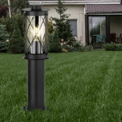 la description La lumière de chemin convainc par son design cool et linéaire et attire l’attention avec style pour l’espace extérieur des maisons modernes. La lampe est en métal avec un abat-jour en verre. La douille E27 intégrée peut être équipée d’une ampoule de votre choix (max. 10 watts). Pour économiser de l’énergie, nous recommandons l’utilisation de lampes LED. L’ampoule n’est pas incluse dans la livraison. Lampe de détail • Type de lampe : lampe sur pied
