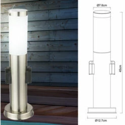 Description Lampadaire élégant en acier inoxydable pour l’extérieur.