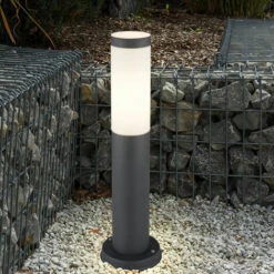 Description Cette élégante lampe sur pied se caractérise par son design élégant et sa grande finition. L’élégante lampe d’extérieur est idéale pour une utilisation en extérieur gr&;ce à son indice de protection IP44. Ce modèle est fabriqué en acier inoxydable de couleur anthracite et en plastique opale et a une hauteur totale de 45 cm. Gr&;ce à la douille E27, vous pouvez utilisez une lampe avec un max. Insérez une puissance de 60 watts dans le luminaire et décidez ainsi vous-même de la couleur et de l’intensité de la lumière. Nous recommandons l’utilisation de LED en raison de leur longévité et de leur économie d’énergie Sources lumineuses. La source lumineuse n’est pas comprise dans la livraison. Deux lumières sont incluses dans la livraison. Détails lumière</ div> • Type de lampe : lampadaire• matériau : acier inoxydable• couleur : anthracite• abat-jour : plastique, opale</ div>• Classe de protection : IP44• Diamètre de la base en cm : 11• Diamètre x hauteur en cm : 7,6 x 45 douille • : 1x E27ampoules • incluses : nonampoules • : 1x 60 watts max.</ div>• alimentation : 230V, 50Hz