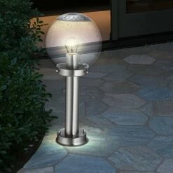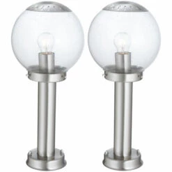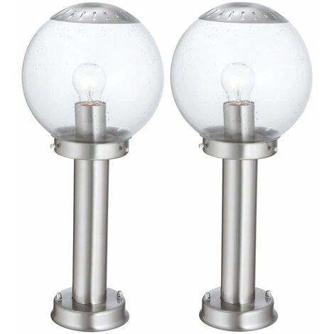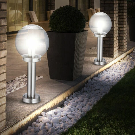Description Lampe d’extérieur élégante qui met en valeur l’espace autour de votre maison avec style et classe. Gr&;ce à la classe de protection IP44, la lampe est résistante aux éclaboussures et donc prédestinée à une utilisation en extérieur, que ce soit sur la terrasse, le balcon ou dans le jardin. La douille E27 est fixée à un beau corps en acier inoxydable et est entourée d’une boule en verre transparent. Cela donne à la lampe une touche élégante. La lampe n’est pas incluse dans la livraison. </ div >Deux lampadaires sont inclus ! Détails • Type : lampe d’extérieur