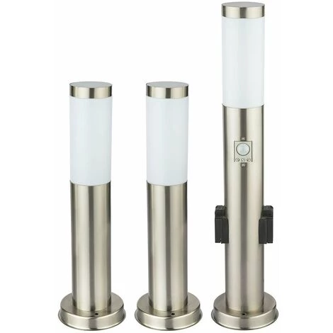Description Lampadaires design en acier inoxydable pour votre espace extérieur . </ div>Avec ces lumières, par exemple, le chemin à travers le jardin peut être parfaitement mis en scène ou certains objets dans l’espace extérieur de votre maison peuvent être magnifiquement accentués.</ div> L’une des trois lumières a 2 prises, ce qui est idéal pour connecter des tondeuses à gazon ou d’autres outils de jardin électriques. De plus, cette lampe est également équipée d’un détecteur de mouvement, ce qui est un plus en sécurité pour votre maison. En raison de la classe de protection IP44, les lumières sont protégées contre les projections d’eau et sont donc prédestinées à une utilisation en extérieur. Les sources lumineuses ne sont pas comprises dans la livraison. </ div> </ div >La livraison comprend un lampadaire avec détecteur de mouvement et douilles ainsi que deux lampadaires d’une hauteur de 45 cm ! Détails du lampadaire avec détecteur de mouvement et prises</ div> • type de lampe : lampadaire