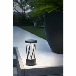 Lampe borne gris foncé, modèle TWIST de FARO. La source lumineuse incluse est SMD LED 10W 3000K 500Lm. Fabriqué en aluminium et fini en gris foncé. Ce luminaire a un indice de protection IP65 et un isolement de classe I.