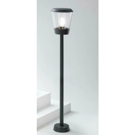 Lampadaire extérieur extérieur composé d’une structure structure in aluminium avec finition gris anthracite et d’un diffuseur in polycarbonate transparent. La forme se développe avec une base ronde au sommet de laquelle s’ouvre une sorte de lanterne représentant le diffuseur. Il permet de monter une lampe E27. ; Avec sa conception moderne et minimaliste, il est idéal pour éclairer la zone extérieure de la maison, comme les jardins et les trottoirs. CARACTÉRISTIQUES ; Éclairage : 1xE27 MAX 23W ( non inclus ) Couleur : Gris anthracite Alimentation électrique : 220-240V Certification : IP54 Utilisation : externe Taille ø175mm x H 1000mm. ***