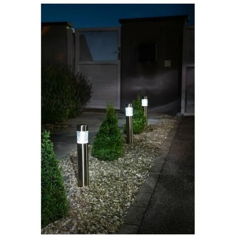 GALIX Borne a énergie solaire en inox – 0,13 w -Nombre de Lumens : 10 – Durée maximum d’éclairage : 8 heures – 1 LED blanche – 0,2W – 1 x 600mAh Ni-Mh AA