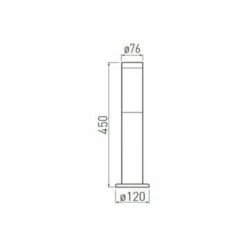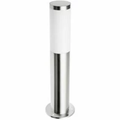 Borne extérieure pour éclairage jardinPetite borne extérieur de 45 cm de hauteur en inox et IP54, idéal pour baliser une allée par exemple ou pour apporter un bel éclairage dans le jardin ou sur la terrasse, la puissance sera déterminée par l’ampoule E27 que vous installerez à l’intérieur, c’est un avantage vous choisissez la température de couleur de votre borne et le niveau d’éclairement.Il s’agit d’un inox 304, prévu pour résister à l’eau de pluie, l’eau douce mais déconseillé en implantation bord de mer, préférez un inox 316 si c’est le cas.Marque : GTVTension : 230VPuissance : Au choix, 1 ampoule LED E27 : le diamètre de cette borne étant de 76 mm, veillez à commander une ampoule led n’excédant pas 60 mm de diamètre, choisissez par exemple une lampe LED E27 de forme tube ou type G45, nous vous suggérons quelques modèles compatibles sous cette fiche produit.(Ampoule non fournie, consultez notre catégorie LED E27)IK 06Poids 463 g.Matériau : Aluminium inoxydable 304 et diffuseur blanc PCCouleur : InoxIndice de protection : IP54Classe de protection : 1Dimensions :Hauteur de la balise : 450 mmLargueur de la balise : 76 mmLargeur de la base : 120 mm