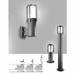 Perenz 5636 A Lampe d’extérieur basse en aluminium couleur graphite et verre Dimensions Ø 14 x Hauteur 90 cm Nécessite 1 ampoule E27 de Max.20W non incluse cm 0