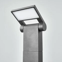 La tête de lampe de la borne lumineuse Marius est mobile et, grâce à ses LED, sa consommation en électricité reste faible.