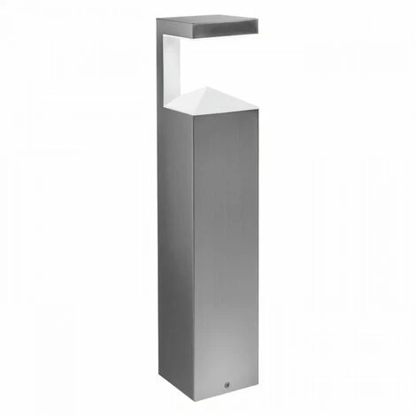 Borne extérieure 50cm au look géométrique moderne. Puissance 8W, 600 lumens, température de couleur : blanc chaud. Boîtier en acier inoxydable Durée de vie: 20.000 h. Garantie : 10 ans. Type de protection : IP44