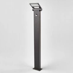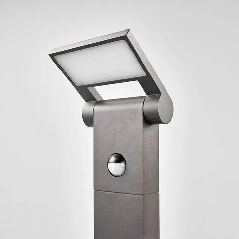 La tête de la borne lumineuse Marius peut être bougée et grâce aux LED dont elle est équipée, la consommation d’énergie reste faible. Un capteur est intégré dans la lampe (angle de détection de 120°, durée d’éclairage réglable de 5 sec. à 8 min., portée de 6 à 9 m).
