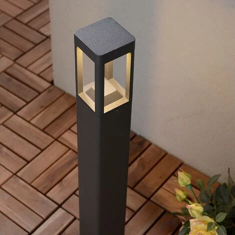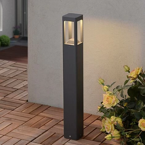 La borne lumineuse LED Bernd est en aluminium peint en gris graphite. Une LED à économie d’énergie est solidement fixée à cette lampe, et la lumière ainsi diffusée est indirecte et de couleur blanc chaud.
