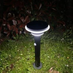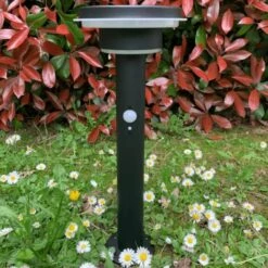 Rappel : Borne lampe led solaire extérieur mural avec détecteur de mouvement éclairage puissant batterie interchangeable 3 modes d’éclairage pour jardin