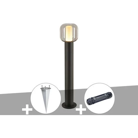 Livrée avec le piquet en acier gris argent 37 cm de hauteur et le boitier de connexion en polyamide 3 pôles pour diamètre compris entre 6 et 12 mm